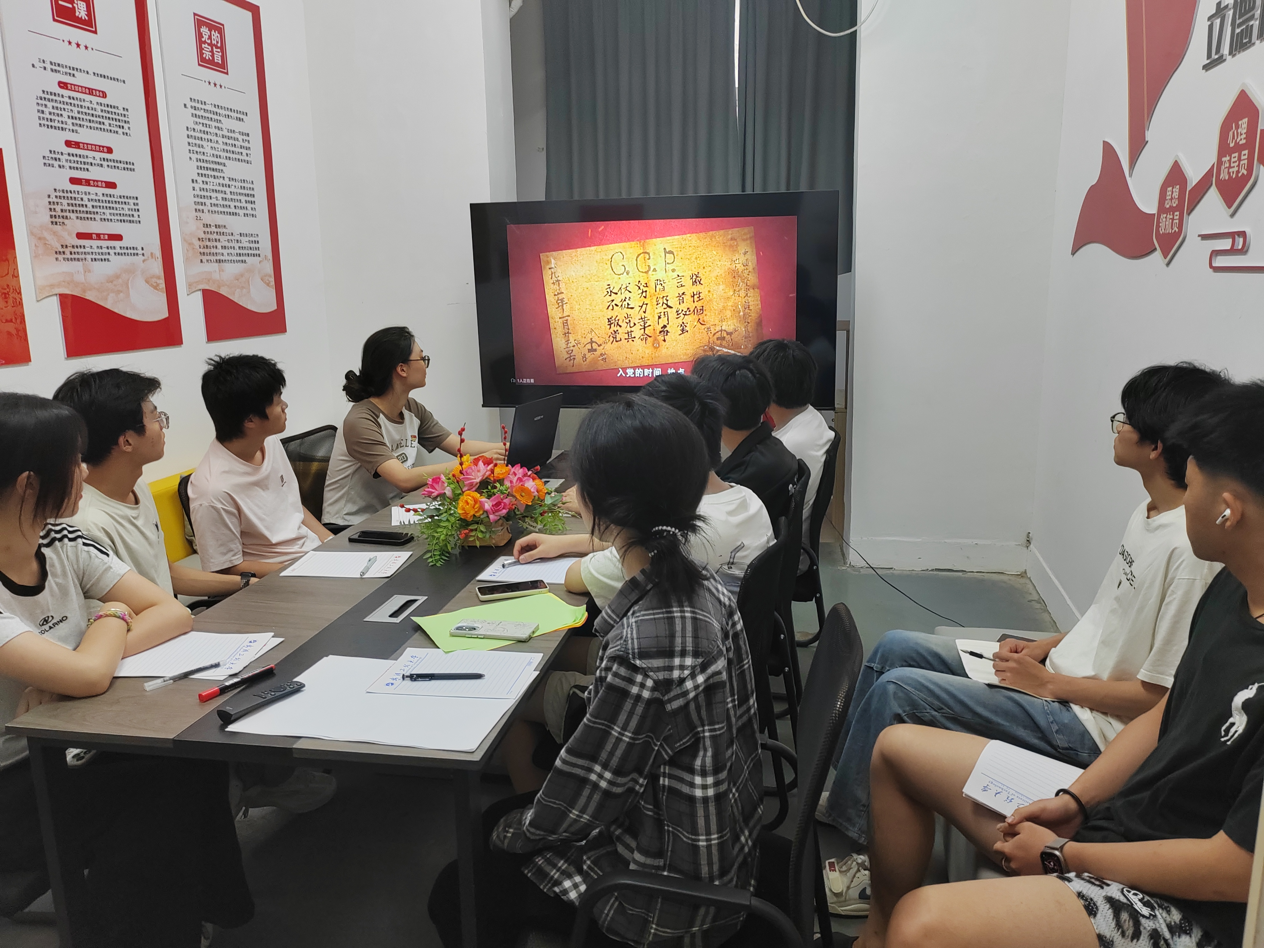 随后,先锋小组成员集体观看红色家书视频《十一书》。荧幕上,硝烟弥漫的历史场景次第展开,左权饱含家国情怀的“决心书”、赵一曼舐犊情深的“示儿书”、陈毅安无声胜有声的“无字书”……一封封浸透血泪的书信,通过影像的力量直击心灵。小组成员沉浸其中,深刻感悟到革命先辈为理想信念抛头颅、洒热血的崇高精神,更加坚定了传承红色基因、践行初心使命的决心。